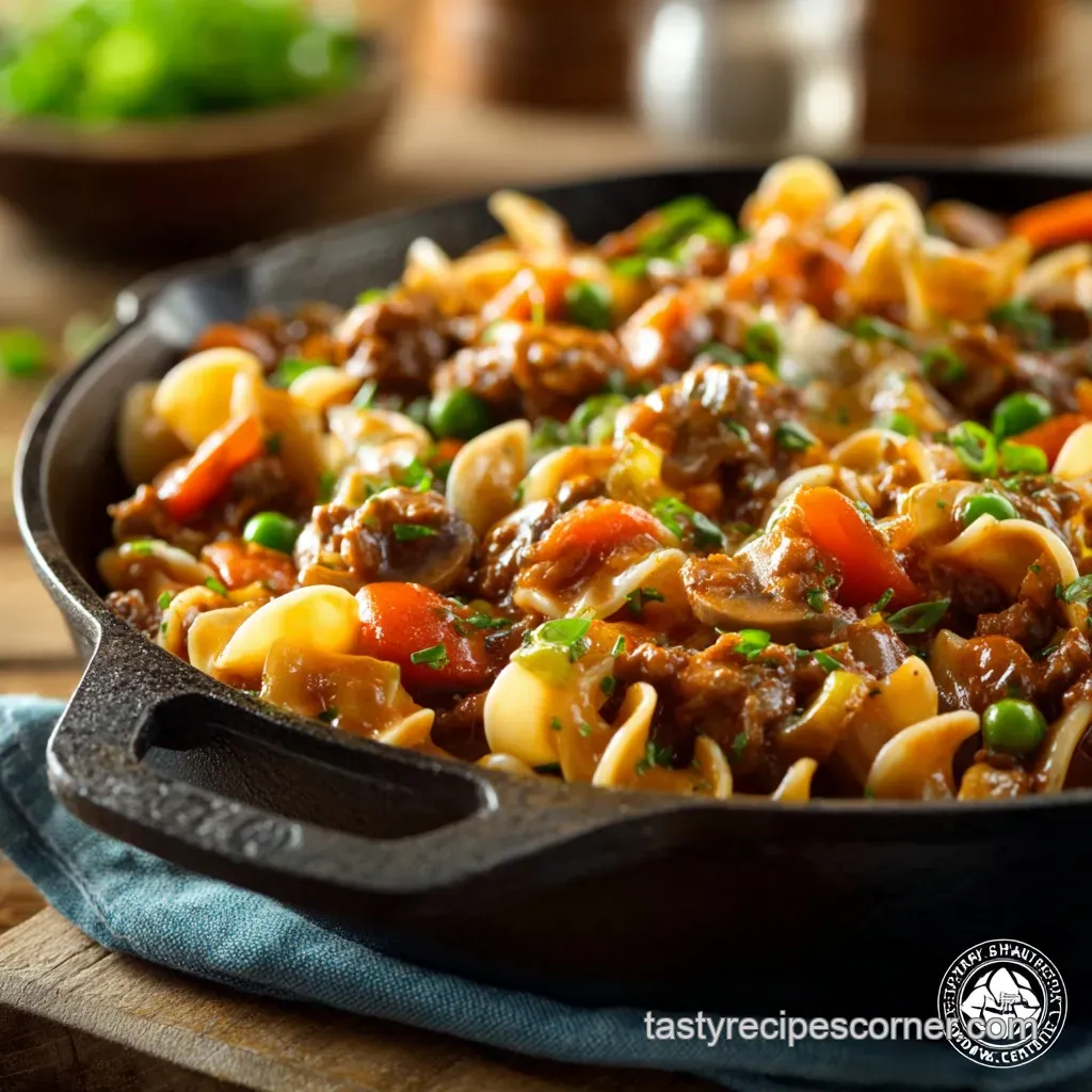 Absolutely. Ground turkey, ground pork, or Italian sausage (casing removed) are delicious alternatives that maintain the savory base. For a vegetarian option, substitute the ground beef with an equal weight of high-quality plant based crumbles, ensuring you use vegetable broth instead of beef broth for the sauce base.
