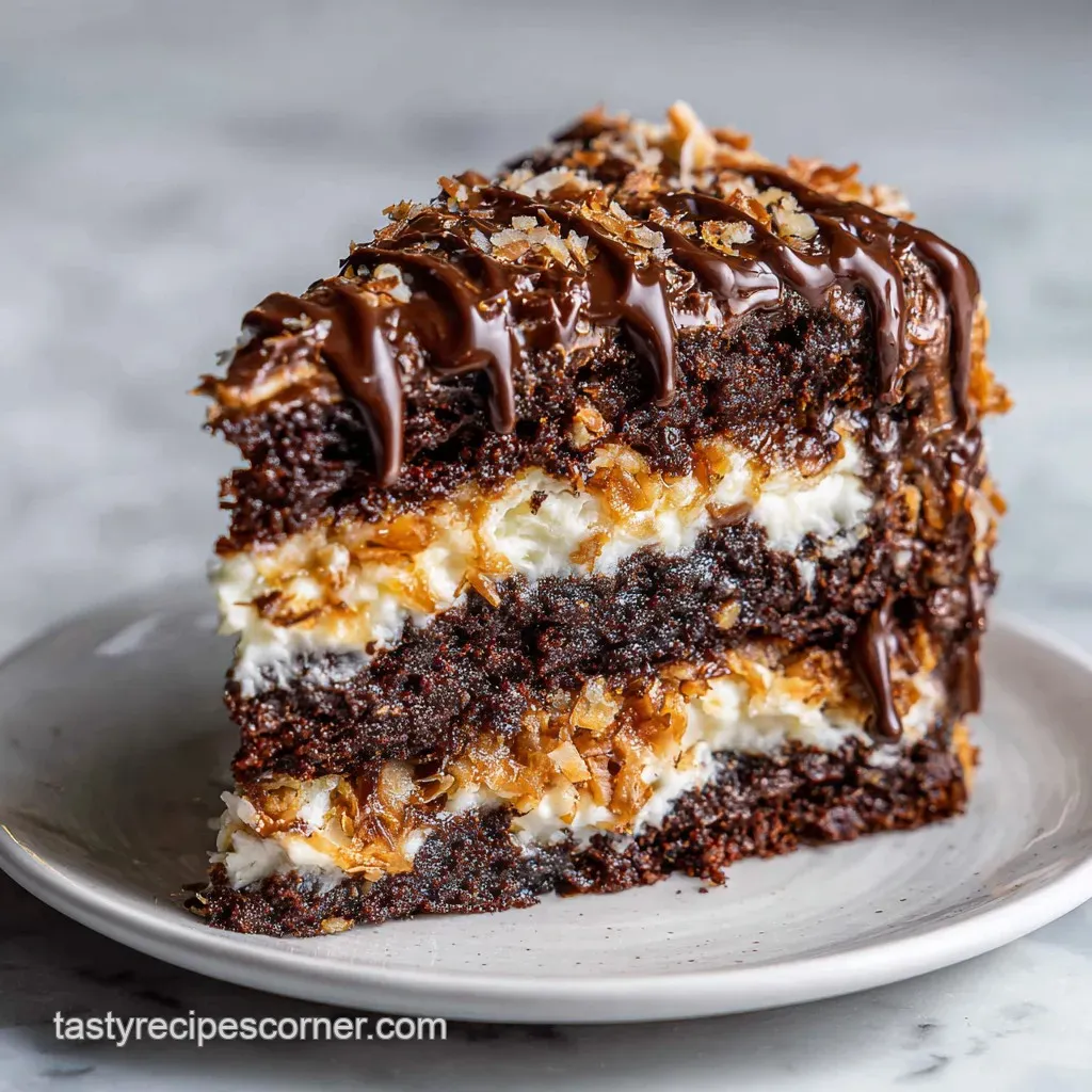 There’s something hypnotic about the aroma of coconut toasting in the oven while the chocolate melts into a glossy pool. When you pull this cake out, the kitchen fills with a scent that is both earthy and deeply sweet.